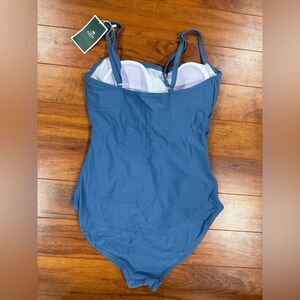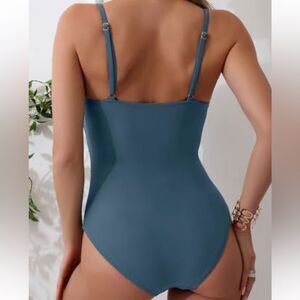 Eomenie Women's One Piece Swimsuit Tummy Control Ruched Steel Blue NWT