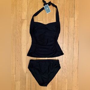 Eomenie Womens Halter Tankini Ruched Tummy Control Two Piece Swimsuit NWT
