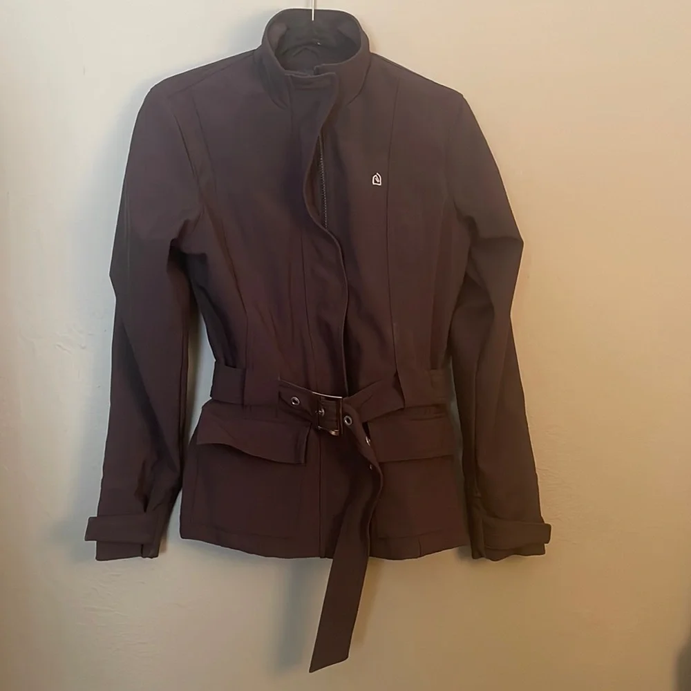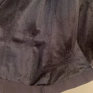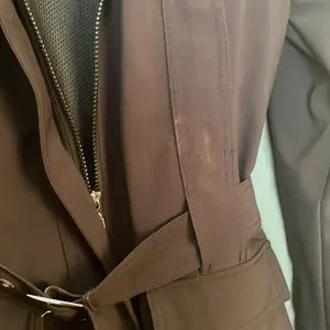 Black riding jacket - double vents at the back to lay smoothly over the saddle. Not insulated but lined. Some pilling at interior lining and light marks at front that are from a horse mash. π