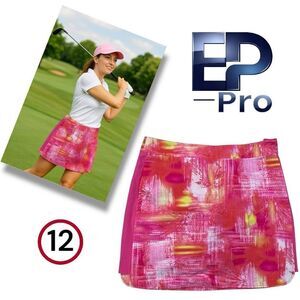 Ep Pro Women's Watercolor Print Golf Tennis Skort Shorts Pink Orange Size 12