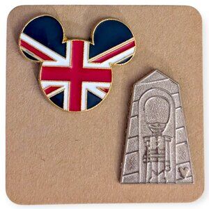 Epcot Disney Pins: United Kingdom Royal Guard and UK Flag Mickey Icon