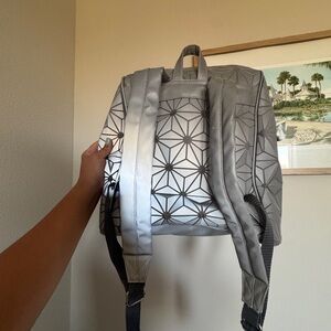 Chic Disney backpack with geometric design. Eye-catching silver finish. Ideal for daily adventures.