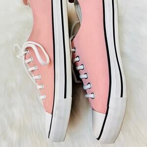 Keywords: pink sneakers, canvas shoes, lace up sneakers, casual shoes women, comfortable sneakers, walking shoes, rubber sole, pink canvas sneakers, fashion sneakers, trendy shoes, everyday shoes, Epic Step, low top sneakers