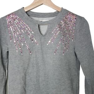 Epic Thread Gray Sweatshirt Keyhole Sequins Girls Size Large