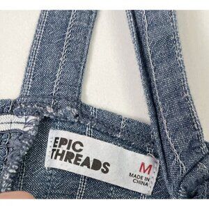 Epic Threads Denim Chambray Popover Dress, Blue, Stripes, Pockets Summer Size M