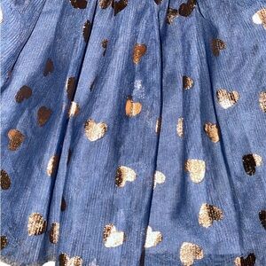 Navy blue mesh skirt with gold metallic hearts.