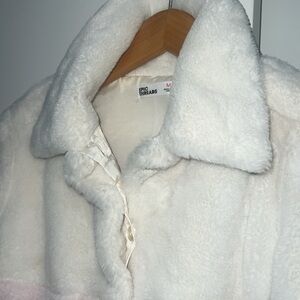 Epic Threads faux fur color block jacket in size M the color is cream and pink. Has pockets and button closure.