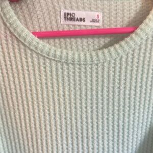 Stylish light green sweater with ribbed texture. Ideal for layering.