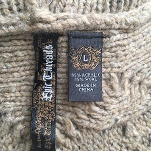 This size large Epic Threads Sweater is in great condition. If features 2 snap buttons and a hood. It is 85% acrylic and 15% wool. Feel free to leave any questions below and make me an offer!