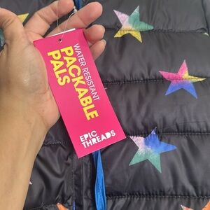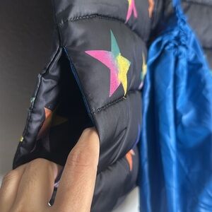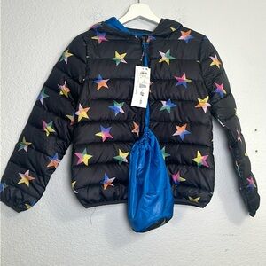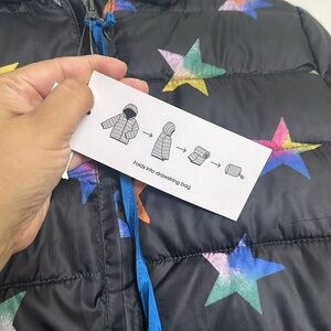 Epic Threads Youth Girls Puffer Jacket Size Large Black Rainbow Stars NWT