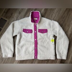 Epic Threads Girls Sherpa Trucker Jacket Sz L 14-16 NWT pink white snap