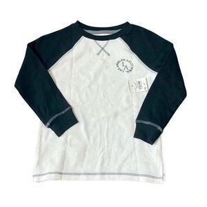 This Epic Threads Little Boys Long Sleeve Graphic Thermal T-shirt in Angel White is a stylish and cozy addition to any little one's wardrobe. Designed for comfort and warmth, this thermal tee features long raglan sleeves, a ribbed crewneck, and ribbed sleeve cuffs for a snug fit. Made from a cotton-polyester blend, it's machine washable and built for everyday wear.