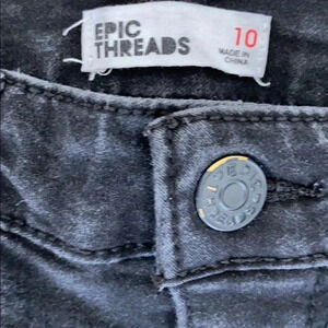 These are gently used epic threads size 10 skinny Black denim jeans. Bought at Macy's. Have the classic five pockets with a button fly.
