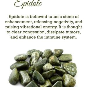 Epidote is a stone that helps you raise your frequency, dispel negative energy, strengthening your immune system and many other healing properties.