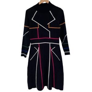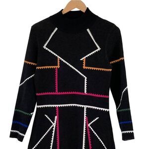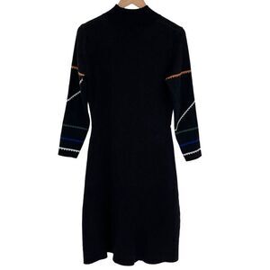 Epik Knit Midi A-Line Dress Long Sleeves Mock Neck Soft Women Medium Black