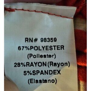 In great condition, no flaws noted. 67% Polyester, 28% Rayon, 5% Spandex