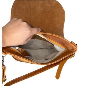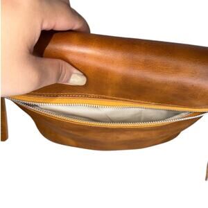 This tan leather crossbody camera bag by Epiphanie exudes a vintage charm with its classic design and quality craftsmanship. The natural grain texture of the leather adds a touch of elegance, while the adjustable strap ensures comfort and versatility. Perfect for everyday use, this bag combines timeless style with practical functionality. can hold small mirrorless camera with extra lens and accessories. Internal divider is missing (easy to get a new one). New without tags, never used.
