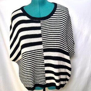 Epique Moi black and white striped knit poncho sweater. Size S/M