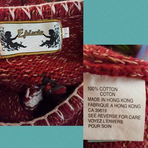 Episcia Heathered Red Cotton Knit Crewneck Sweater w/ Snowman