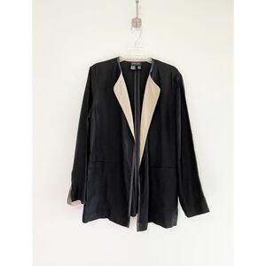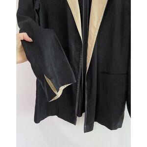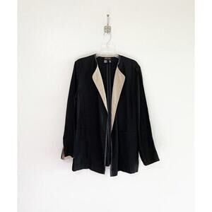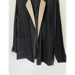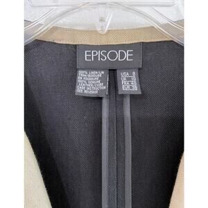 Episode Linen Jacket Cardigan Tan Black With Leather Trim Minimal Size 8