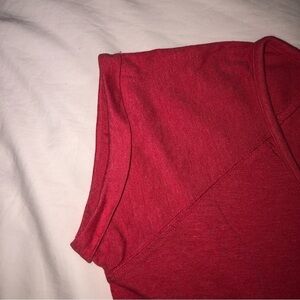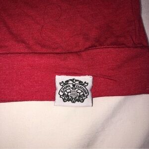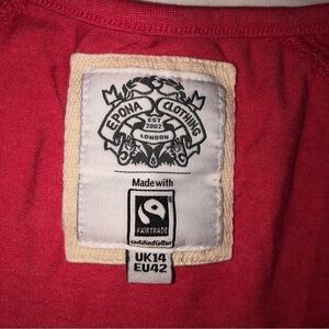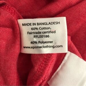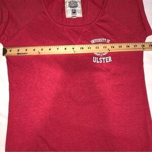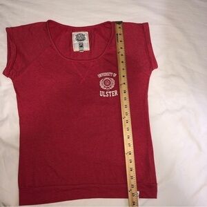 Excellent pre-loved condition made with fair trade certified cotton. Short cuffed sleeves with university graphic on the front. Banded at the bottom. Color is a sun washed red. See measurements in photos.
