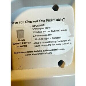 For easier breathing and a good night sleep use the Equate Invisible Cool Mist Humidifier. Irritated sinuses and coughing can get in the way of you getting the rest you need. Our humidifier provides an invisible, filtered cooling mist that delivers moisture to dry throats and noses. The cool mist helps to relieve cold and flu symptoms, nasal congestion, and sinus irritation. It quietly runs for up to 24 hours, and there are high and low settings for customized moisture output. There is also an easy-grip handle for convenient carrying and filling. The wicking filter absorbs water from the tank, and then captures minerals and impurities in the water before dispersing them into the air. Change your wicking filter every 1-2 months for optimal performance. (Replacement filters not included.) Equate Invisible Cool Mist Humidifier is the perfect solution for improving the air quality in any room.