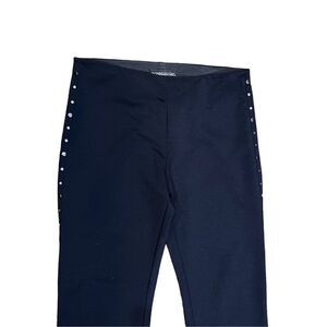 Made a 54% nylon, 17% polyester, and 29% Lyra. Feature and elastic waistband and studded detail down the sides. Laying flat measure 17" in the waist, 19.5" in the hips, 10" rise, and 34" inseam.