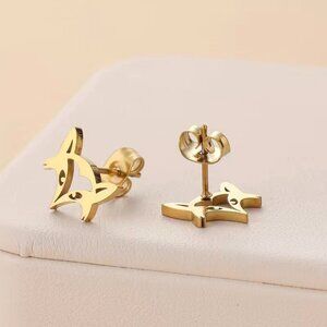Adorable stainless steel stud earrings featuring a fox design, perfect for equestrian lovers!