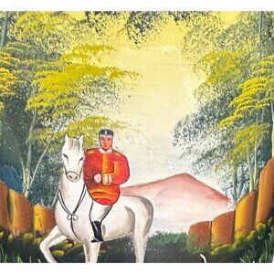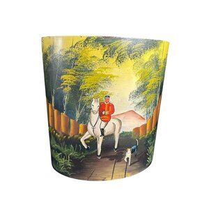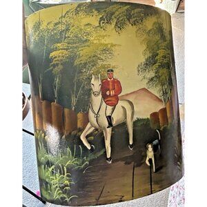 Equestrian Fox Hunt Hand Painted Wood Waste Basket Trash Can Bed Office 12.5". Please see photos for additional information and item particulars.
