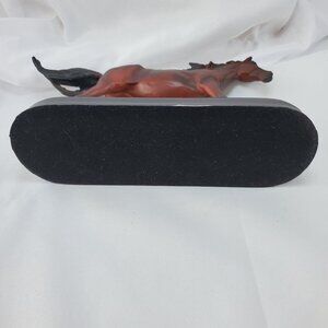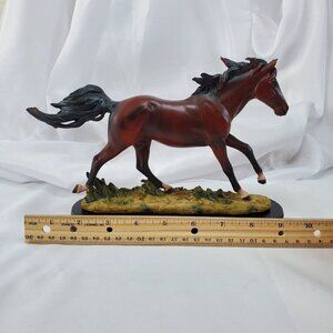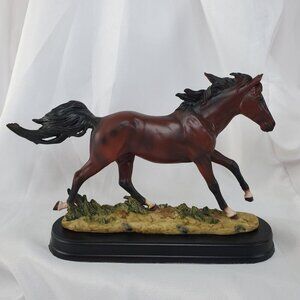 Equestrian Galloping Dark Brown Horse on Wild Pastures Statue 9.25" Long Handsome Stallion with Wooden Base Animal Decor Sculpture