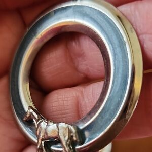 Equestrian Horses Cowgirl Earring Silver Blue Circular Metal