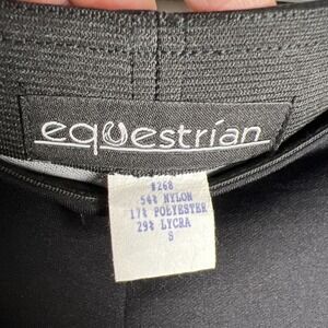 These Equestrian Milo pull-on pants in women's size small are a versatile wardrobe staple for any occasion. The solid black color and straight leg style offer a classic and sophisticated look, while the polyester, nylon, and spandex material provides comfort and flexibility. With features like an elastic waist and stretch fabric, these pants are perfect for everyday wear or more formal events. Whether you're traveling, attending a wedding, or heading to a party, these pants are a stylish and practical choice that can be dressed up or down to suit any outfit.