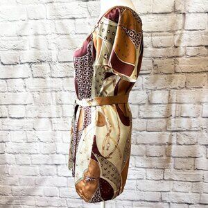Equestrian Print Scoop Neck Belted Satin Tunic | Women's Size Small