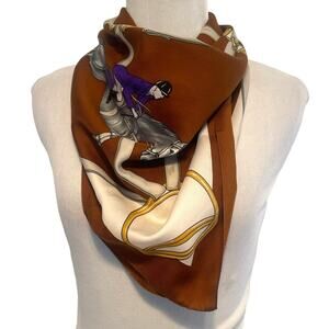 Equestrian Scarf 30" Square Brown Cream Purple Riding Horse Show Rope Bridle