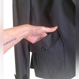 Equestrian Style Black Linen Cotton Blend Blazer Unique Double Pockets Quiet Lux