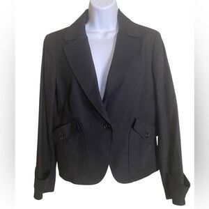 Equestrian Style Black Linen Cotton Blend Blazer Single Button Unique Double Pockets Quiet Luxury English Countryside Old Money