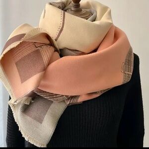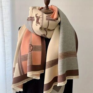 Warm and stylish Equestrian themed cashmere like scarf (could be a worn like a cape, just add a belt).