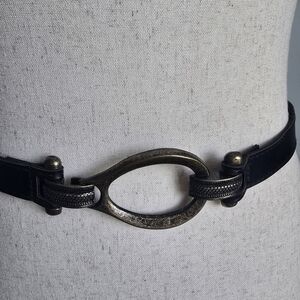 Equestrian Waist Belt Black Brass Hook Buckle Adjustable Vegan Statement, Women's Size 12