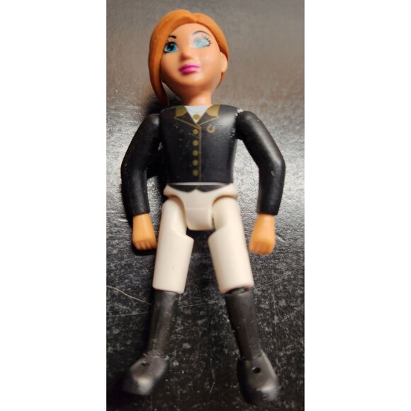 This miniature equestrian figure is ready to gallop into your collection. With a stylish black jacket and white pants, it's the perfect companion for your toy horse. Just be sure not to let it near your real horse, or it might try to start a dressage routine.