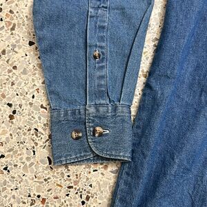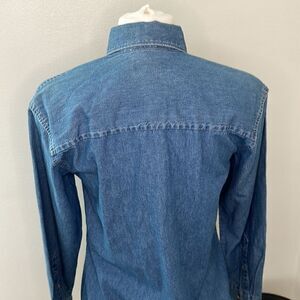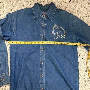 Equestrian horse Jean denim chambray western button up down shirt top s small
