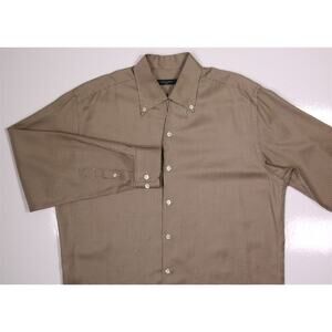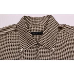 Equilibrio Gold/Black Houndstooth Check Cotton Open Collar Dress Shirt~ Large