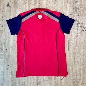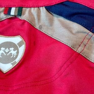 Womens Equine Couture Carrington short sleeve polo style riding shirt. NWT, small stains (see photo 10 and 11) but I didn't wash to remove since the shirt still has tags, I didn't want to ruin the tag. All measurements are taken flat and are approximate.