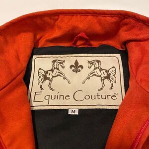 Equine Couture Red velvety vest size medium. Snap adjust at the bottom and waist. Zippered front. Embroidered equine details. Excellent condition. From a smoke free home.