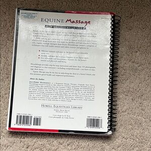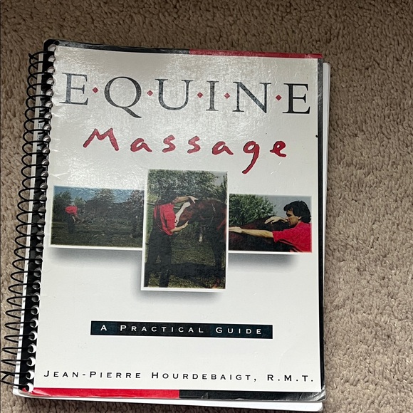 Spiral-bound guide on equine massage techniques. Features images and practical advice.