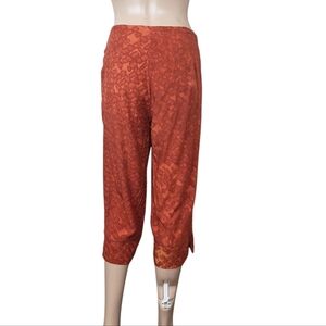 Stylish rust-colored pants with a unique pattern. Perfect for casual outings.