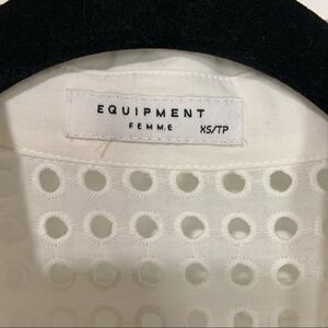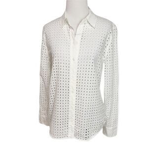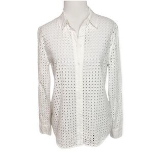 Equipement Femme Classic White Perforated Cotton Button Down Blouse Size XS