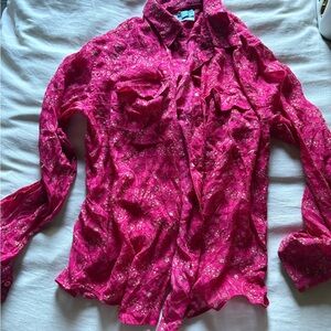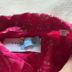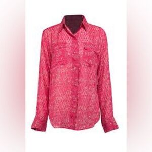 Stylish red paisley shirt by Equipment. Features button-down design. Ideal for versatile wear.