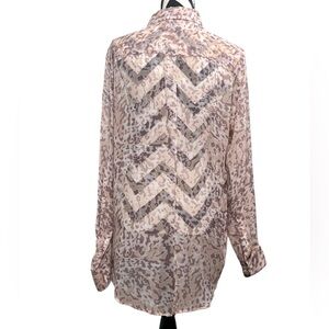 Equipment 100% Silk Sheer Leopard Print Long-Sleeve Button Down Front Blouse.