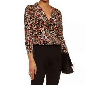 Equipment Adalyn Leopard Heart Print Silk Shirt Natural Ginseng Size XS