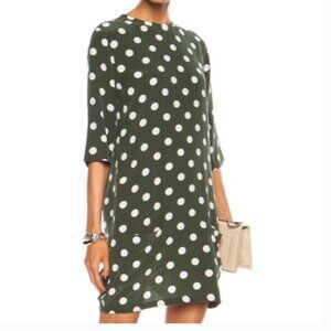 Equipment Aubrey Green & White Dot Silk Shift Dress size small